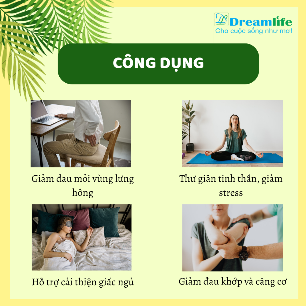 Gối chườm lưng thảo dược Dreamlife là sản phẩm chuyên dùng dành cho Spa với nhiều tác dụng tốt cho sức khỏe như giúp giữ ấm, tăng lưu thông máu, giúp hệ tiêu hóa hoạt động tốt, thư giãn thần kinh, trị đau lưng nhức mỏi và xua tan mệt mỏi.