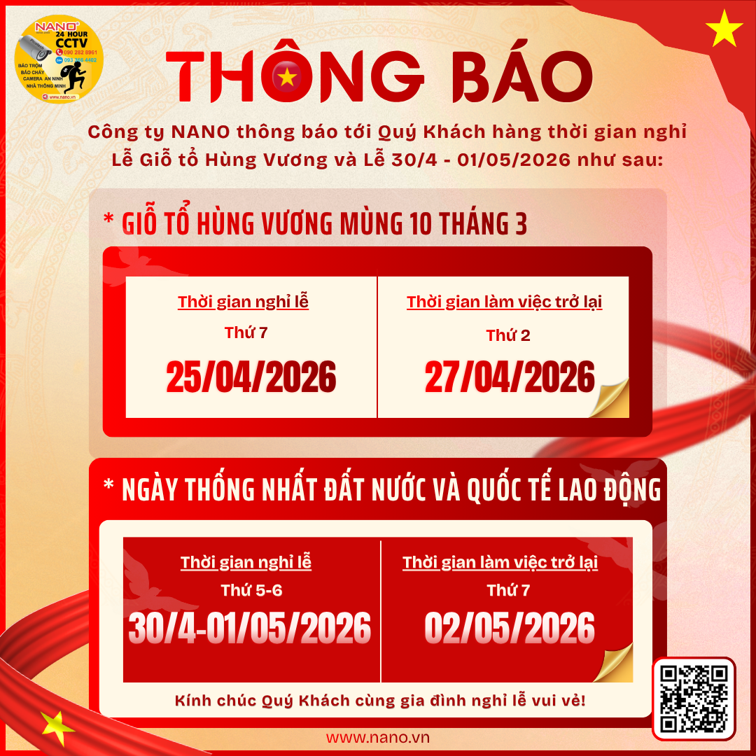 Công ty NANO xin trân trọng thông báo lịch nghỉ lễ Giỗ Tổ Hùng VươngNgày Thống nhất đất nước – Ngày Quốc tế Lao động năm 2026 như sau: