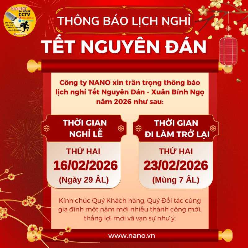 Kính gửi: Quý Khách hàng, Quý Đối tác Công ty Cổ phần SX TM&DV Tin học – Xây dựng NANO xin thông báo Lịch nghỉ Tết Nguyên Đán Xuân Bính Ngọ 2026 như sau: Thời gian nghỉ: Bắt đầu từ ngày 16/02/2026 (nhằm ngày 29/12 ÂL) Thời gian đi làm trở lại: Ngày 23/02/2026 (nhằm […]