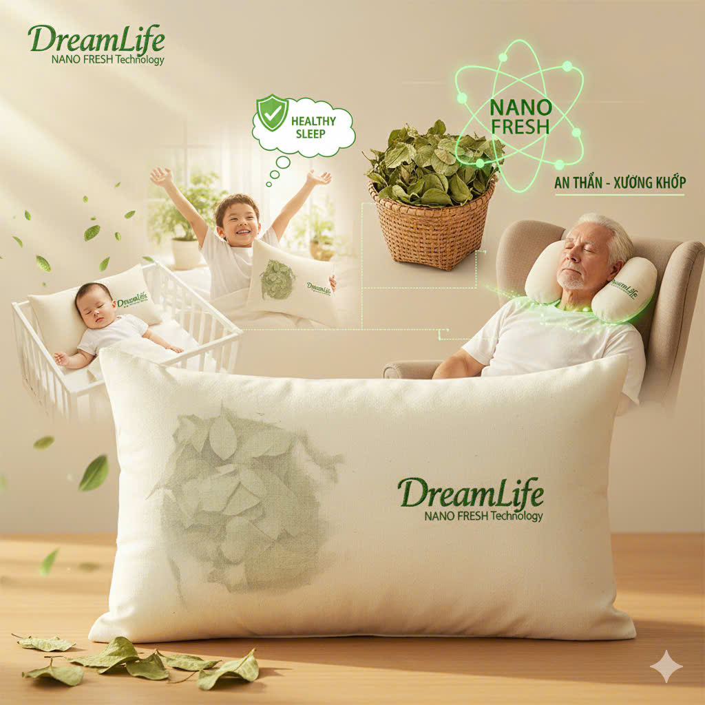 GỐI NẰM THẢO DƯỢC ĐINH LĂNG DREAMLIFE – GIẢI PHÁP GIẤC NGỦ AN TOÀN & CHẤT LƯỢNG
