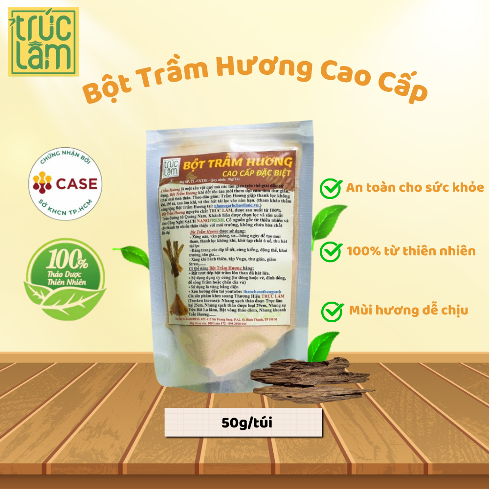Bột trầm hương Trúc Lâm là sản phẩm uy tín, được nhập từ Quảng Nam, Khánh Hòa, …có nguồn gốc từ dó bầu thiên nhiên và cấy vi sinh tự nhiên thân thiện môi trường, không chứa hóa chất độc hại.