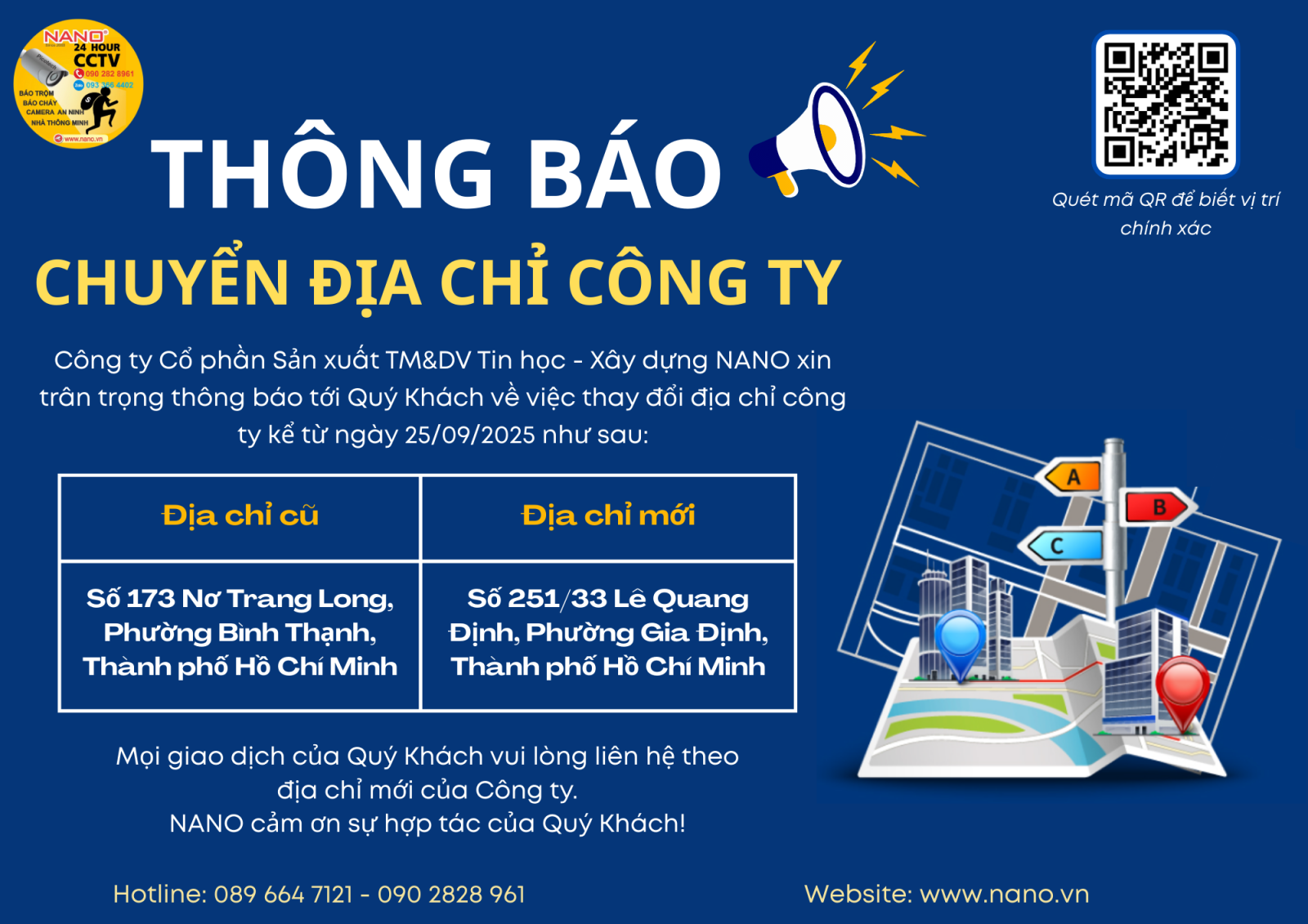 THÔNG BÁO QUAN TRỌNG: CÔNG TY NANO CHUYỂN ĐỊA CHỈ VĂN PHÒNG MỚI