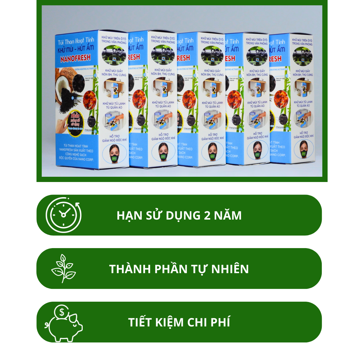 A3. TÚI THAN HOẠT TÍNH KHỦ MÙI – HÚT ẨM NANO FRESH (Túi 45g) – Mẫu hộp mới